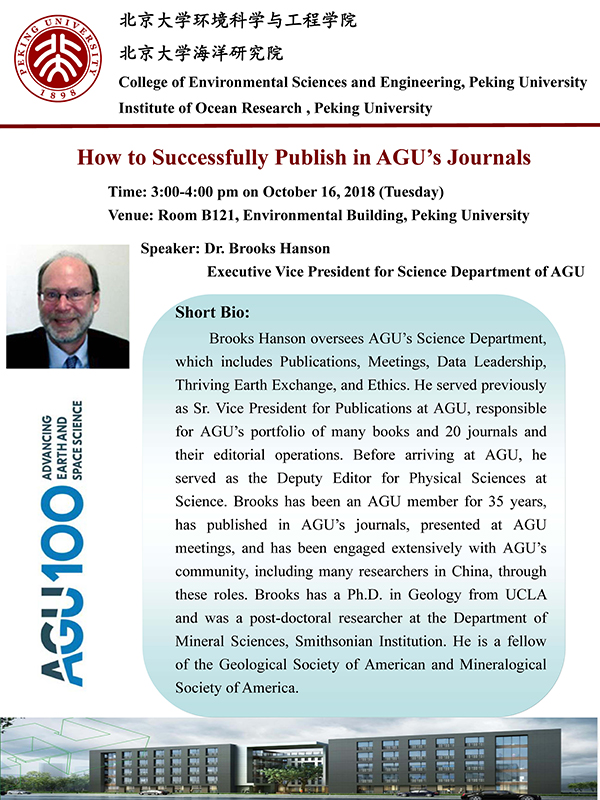 Dr. Brooks Hanson 16 October , 2018 Room B121, Environmental Building, Peking University, 3:00-4:00 PM