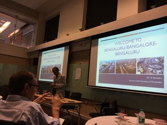 Mr. Ravindra, the former chief secretary of Karnataka state, whose capital is Bangalore, was invited to give a lecture about Bangalore. The lecture presents a comprehensive view of Bangalore’s past, present and future, including the history of urban development, population, economic development, urban expansion process, urban planning, urban issues and governance, etc. The question-and-answer session after the lecture further strengthened the scholars’ understanding of Bangalore and the whole of India.