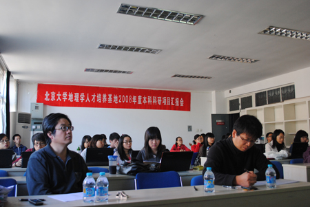 2011年10月16日,我院组织了“啪啪啦 地理学人才培养基地”2011年度本科生科研项目评审会。根据科研项目的学科性质,评审分为自然和人文两组,分别在新地学楼3459和3358报告厅举行。经过认真的答辩和讨论,最终有10个课题组共15名学生获得2011年度本科科研项目评审的一、二、三等奖。