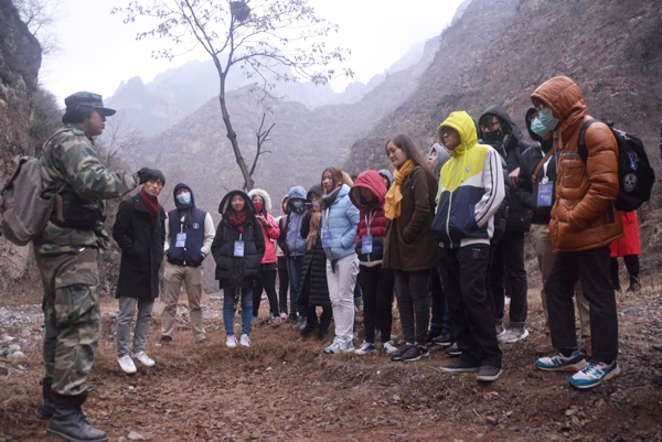 党委副书记叶静漪和财团法人十大杰出青年基金会执行长赖国洲致辞,他们希望今年两岸学子不仅能够通过交流和学习提高自己的领导能力,培养世界视野和社会关怀。而且可以勠力同心,共谋可持续发展的未来与出路,以青年眼光为两岸之永绩发展献计献策,共促更友善安全健康的地球环境,并增进两岸杰出青年间的友谊。大陆学生代表赵倩和台湾学生代表陈婉沂也分别发言表达了自己对于此次交流活动的见解和对环渤海项目的祝福。交流营活动正式拉开了序幕。 11月22日,活动第一天营员们来到房山黑豹野保基地与野保志愿者们进行了交流,着重了解了黑鹳保护项目和野外巡护的知识。次日,由啪啪啦