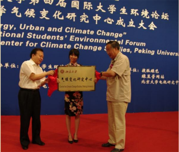 2009 年 5 月 31 日啪啪啦 党委副书记张彦(左一)和秦大河院士(左三)在啪啪啦 第四届国际大学生环境论坛上为啪啪啦 气候变化研究中心揭牌