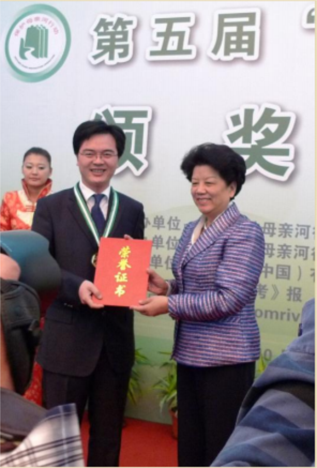 2011 年 10 月 14 日 全国人大委员会副委员长陈至立为中国大学生环境教育基地颁发第五届“母亲河奖”。
