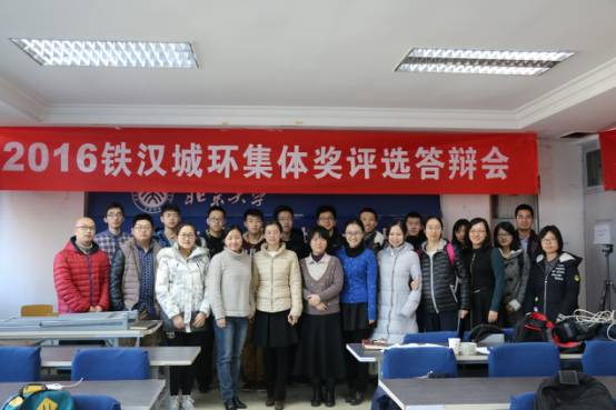 的大力支持下和同学们的积极参与下,再次启动了铁汉城环集体奖评选活动。 活动开始以来,得到全院同学的积极参与,最终进入答辩环节的17个集体分别是14级生态地科班、城环羽毛球队、14级博士党支部、14级博士班、129核心团队、城环慢垒队、城环排球队、15硕士党支部、文县实践团、城环男篮队、14环科班、城环学生会部长团、城环研会部长团、“燕南北侧户外空间改造计划”课程小组、城环辩论队、丹霞山实践团、中国大学生环教教育基地志愿者团队。 在答辩过程中,各个团队展现出了自身独特的风格与团队精神。其中14级生态地科班着重强调了自身野外实习经历;城环羽毛球队以顽强拼搏为主题,逐步从低谷中走出,迈入高峰;14级博士党支部和14级博士班重点介绍了丰富的活动和制度创新方面的突出贡献;129核心团队每年对于啪啪啦