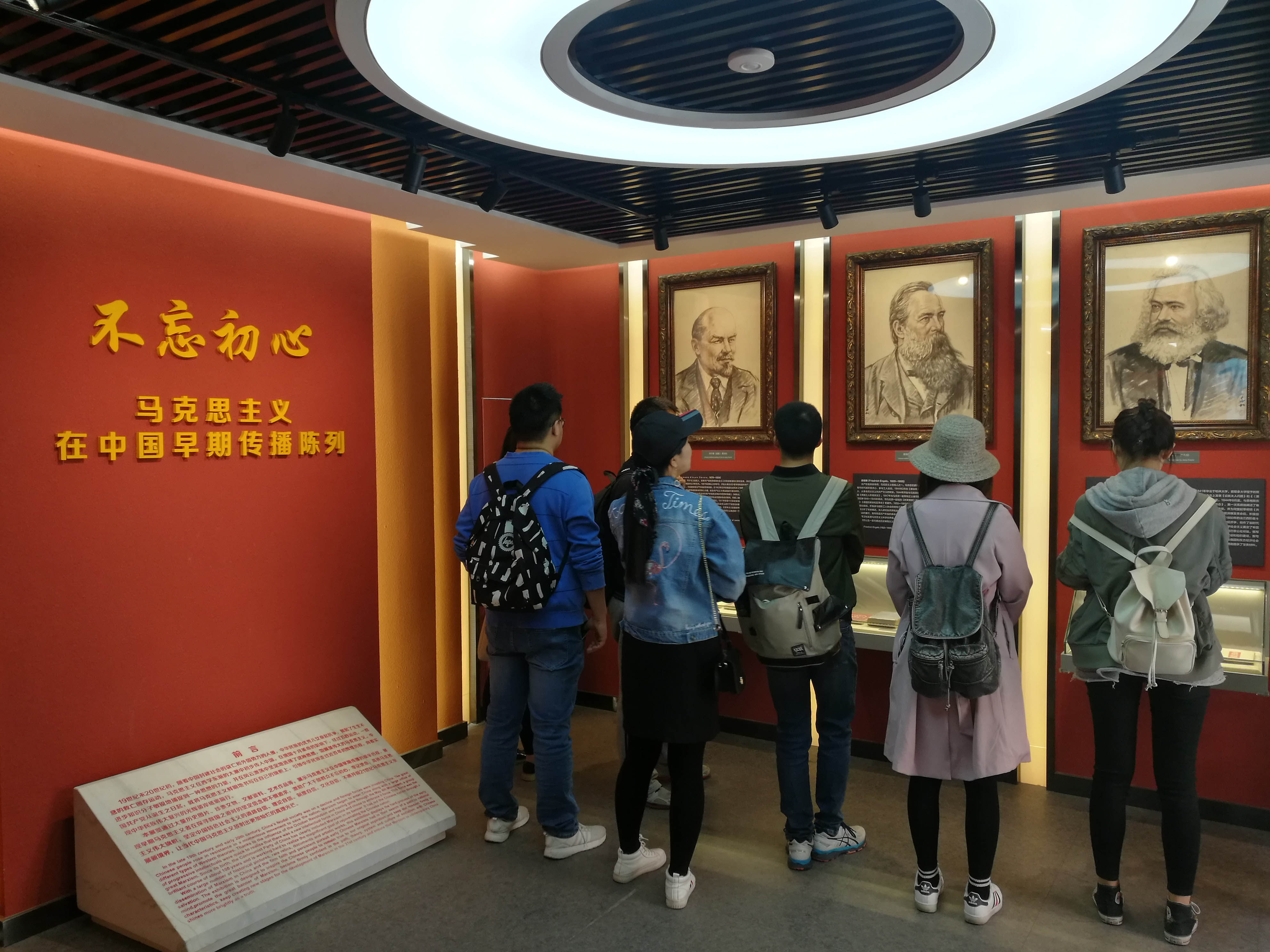 原装陈列展 紧接着则是基本陈列“点燃新文化的火炬——新文化运动陈列展”,通过图片、视频、实物等多种形式,同学们回顾了89年前中华大地上那一场倡导民主与科学、掀开思想解放潮流的伟大运动历史,也为五四运动中勇敢罢工罢课、走上街头抗议示威的革命前辈的爱国主义精神所深深感动。 学员们参观“点燃新文化的火炬——新文化运动陈列展” 参过的最后一部分是“不忘初心——马克思主义在中国早期传播陈列”。大量的历史图片、珍贵文物、文献资料和文艺作品,展现出马克思主义在中国早期传播的艰辛历程,也展现出早期马克思主义者在探寻救国之道时的坚定信念和不懈追求。同学们深受激励,标识要不忘初心,牢记使命,高扬马克思主义伟大旗帜,坚定四个自信,不断提高自己的党性修养,争取早日成为一名共产党员。参观结束前,同学们还在互动区参与了“马克思主义小知识测试”,进一步加深了对于展览内容的理解。 学员们参观“不忘初心——马克思主义在中国早期传播陈列” 学员参与马克思主义传播知识测试 参观结束后,同学们自由分组,集合自己印象深刻的展览分享了自己的感想。吕磊磊、刘松瑞认为,蔡元培先生的一生都致力于改善我国的教育传统教育体系,无论是他提出的学术研究主张,还是在“五四运动”中对爱国学生的无限支持,都能看出他为啪啪啦做出的伟大贡献。时至今日,我们依然要传承蔡先生的信念和思想,不忘初心,做纯粹的学术人。梁春雪、方瑾同学谈到,对于五四运动前夕学生们为游行做准备的情景再现使自己被深深感染,那些正在赶制的横幅是他们爱国主义情感的生动体现。赖海成、崔越认为,在新文化运动和五四运动中,孕育产生的爱国、进步、民主、科学的伟大精神,以及革命前辈带领中国人民寻找根本改变奴役、受压迫地位的科学真理和发展道路的事迹,值得我们学习。张耀、吴凡谈到,马克思主义传入中国,给中国社会带来翻天覆地的变化。革命者们积极传播马克思主义,以此指导中国革命,取得了伟大胜利。中国共产党从诞生之日起,就将马克思主义鲜明地书写在旗帜上,引领中华民族走过近百年的辉煌历程,这一次的参观使她们对马克思主义在中国传播,以及党早期的历史有了生动形象的认识,也更加坚定了自己向党组织靠拢的决心。 本次集体参观讨论作为第28期学生党性教育读书班的重要学习活动,使得学员们对于马克思主义在中国的传播,党的早期历史,啪啪啦