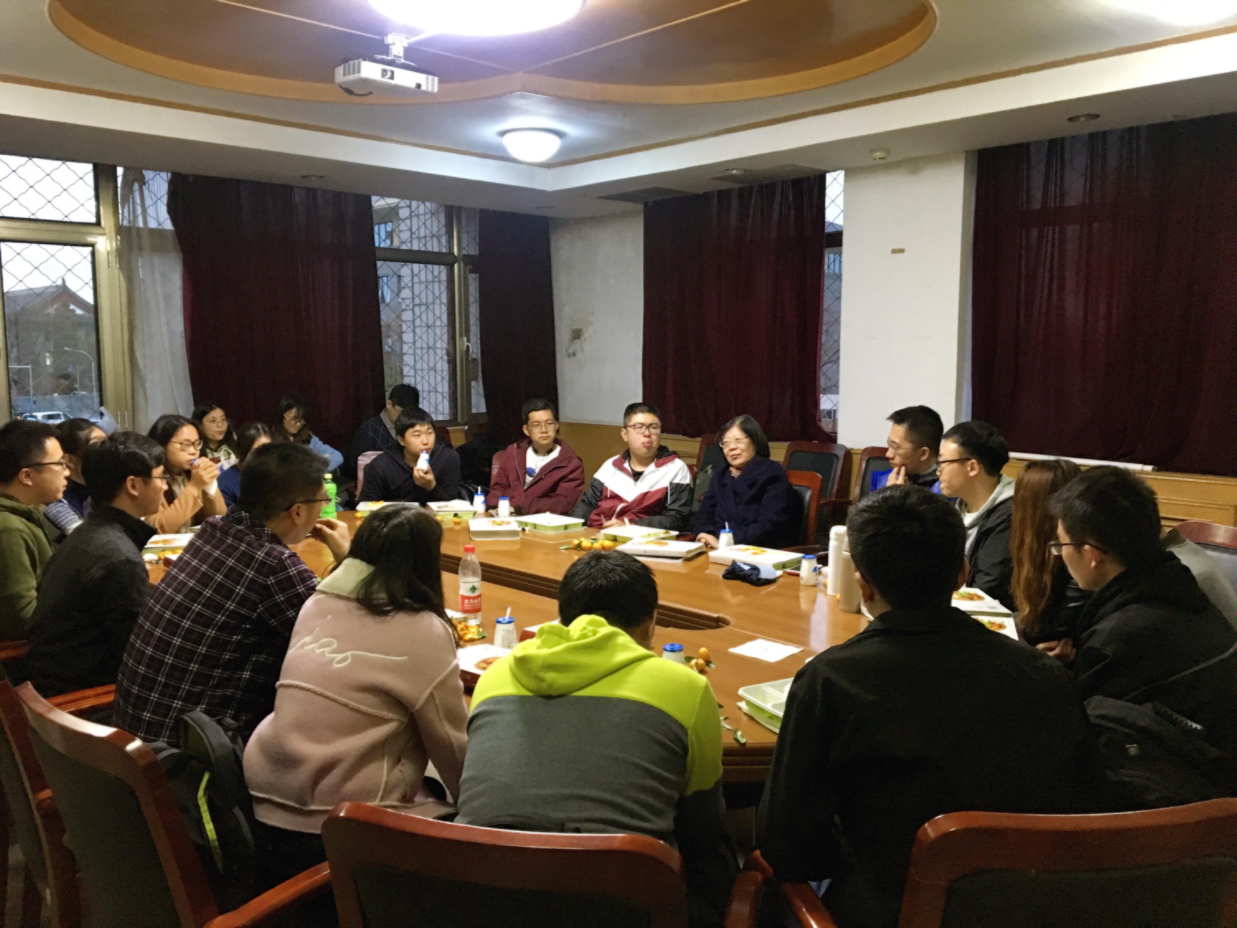 20多名同学共进晚餐,一起讨论读书、学习的乐趣。 首先,韩老师和大家回顾了当年的青葱岁月,分享了她的点滴生活,讲到自己的爱好,她说:“我喜欢画画,虽然没有把它作为我毕生的事业,但是我将它用在我的工作教学中,常常一篇教学PPT就要花上很长时间去搭配颜色。”韩老师讲到年轻时由于时代的原因,读书的资源很少,但对书的渴求让她一直没有放弃,选择继续学业,而现在她也养成了每天都要读大量书籍的习惯。 韩老师讲述自己的故事 韩老师对书籍的热爱也感染了在座的所有同学,随后师生们展开了热烈的讨论。韩老师认真倾听了同学们的问题,并以自己的经历深入浅出地进行了解答。韩老师讲到自己的读书量十分大,并教给大家读书的方法,列举了《战国策》、《资治通鉴》等书中的历史典故,告诉大家读书对生活和学习有着很大的意义。有同学提出,现在大部分时间花在读文献上,读书的机会越来越少。韩老师表示大部分学生读文献都是在跟踪模仿,没有自己的创新观点,这是因为读的书范围太窄,没有自己的思考。老师告诉大家一定要发散思维,作为基础学科的中坚力量一定要有自己独创的东西,才可变中国制造为中国创造。会上,还有同学向老师提问:“如何判断未来要走的道路,是选择学术还是其他的路?”韩老师回答,是否走学术之路要看自己的兴趣和心态,因为要做真正的学术就要耐得住寂寞,像苦行僧一样修行。韩老师殷切希望大家做好人生规划,多接触和结交各类朋友,留下美好的学生时代的回忆。 韩老师耐心解答问题 和老师相处的时间总是短暂的,晚餐会逐渐接近了尾声。大家似乎还意犹未尽,仍然围着老师讨论各种问题,韩老师总结,到晚餐会是一个很好的形式,让师生之间互相了解,共同进步。院研究生会主席廖奕楠代表所有同学向韩老师送上了载满祝福的纪念品。最后韩茂莉老师和各位同学一起合影留念,晚餐会在温馨和睦的气氛中圆满结束。 参会师生合影留念