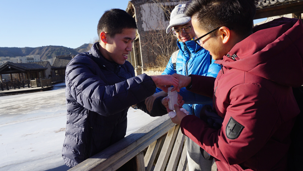 本学年开展的“活力党支部/团支部/班级”计划的重要组成部分。 班委成员及同学们为本次活动作了精心而充实的准备。12月11日,班委于逸夫二楼3358召开实践动员会,明确了团队分工,进行了计划介绍,强调了本次活动的实践意义和安全事宜。动员会后,同学们按专业组成了研究小组,并确定了相关负责人,讨论出研究思路后,确定了采样、访谈、实地探查等调研形式,预先查找、阅读了大量文献,了解古北水镇的历史和近年来开发的状况,对此次考察活动的目的和背景形成清晰的认识,明确了调查的对象。 图1 实践活动动员会现场 图2 实践团在古北水镇合影 图3 实践团成员在考察特色建筑 17日清晨7点,尚晨光熹微时,实践团同学们于畅春新园集合,登上前往古北水镇的巴士。考察过程中,成员细心观察,踊跃提问。在古北水镇永顺染坊博物馆,实践团成员细心观看了传统布匹染色的发展历程、工艺步骤和由此形成的染坊文化。成员还考察了酒坊、风筝店、戏台、令公祠等典型节点,对古北水镇的建筑风貌、交通格局、开发模式都有了深刻的感性认识。 图4 同学们在实践中结下了深厚情谊 图5 长城上合影 下午,实践团同学登上司马台长城进行考察。司马台长城始建于明洪武初年,又经蓟镇总兵戚继光和总督谭伦加固。其山势陡峭,地势险峻,工程浩繁,在山下望司马台长城,只见它背倚蓝天,横亘东西,野云悠悠,极高极险。造就出这一雄秀奇特无比的长城景观,应归功于这里特殊的燕山地形、重要的地理位置和戚继光等古代将士们的智慧创造。 实践团成员发挥自己的专业特长,在调研过程中积极发现问题,采用专业手段进行了基础数据的搜集。环境科学专业的同学采集了水镇内河道的水样,生态科学专业的同学们考察了当地植物的多样性。从长城返回后,实践团成员向游客发放了调研问卷,为实践报告提供了良好的数据基础。就初步调查结果来看,游客普遍对水镇感到基本满意,也看到了水镇开发过程中出现的诸多问题。 图6 环境科学专业成员现场采取水样 图7 向游客发放问卷 通过本次活动,实践团成员有所见闻、有所思考、有所记录,对自身所肩负的重大历史责任有了更明确的认识。历史只会眷顾坚定者、奋进者、搏击者,而不会等待犹豫者。啪啪啦