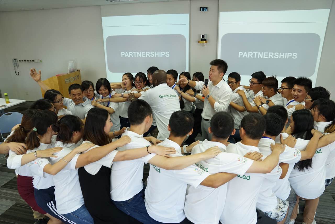 研究员程和发博士、索尼精密部件(惠州)有限公司总经理森冈肇先生、北京博物探索学校杨晔老师、“中国民间环保优秀人物”奖获得者叶榄老师为同学们讲授环保相关知识、分享经验、交流思考。各环保项目团队代表与环保领域的优秀导师面对面切磋交流,针对案例征求改进方案,并就如何在学校、社区开展环境公益活动深入探讨。 图3 程和发博士讲授 图4 青年团体代表认真听讲 导师们演绎各类实际案例,分析中展现了极为专业的素养和深厚的学识,课程内容清晰且生动有趣。除此之外,培训过程中穿插各类游戏,既揭示了领导与合作等关系内涵,也促进大家结成深厚的友谊,整个培训过程气氛热烈而亲切。 图5 领导力与合作力小游戏(一) 图6 领导力与合作力小游戏(二) 图7 “绿色征程”2017索尼环保社团青年领袖培训项目全员合照 图8 啪啪啦