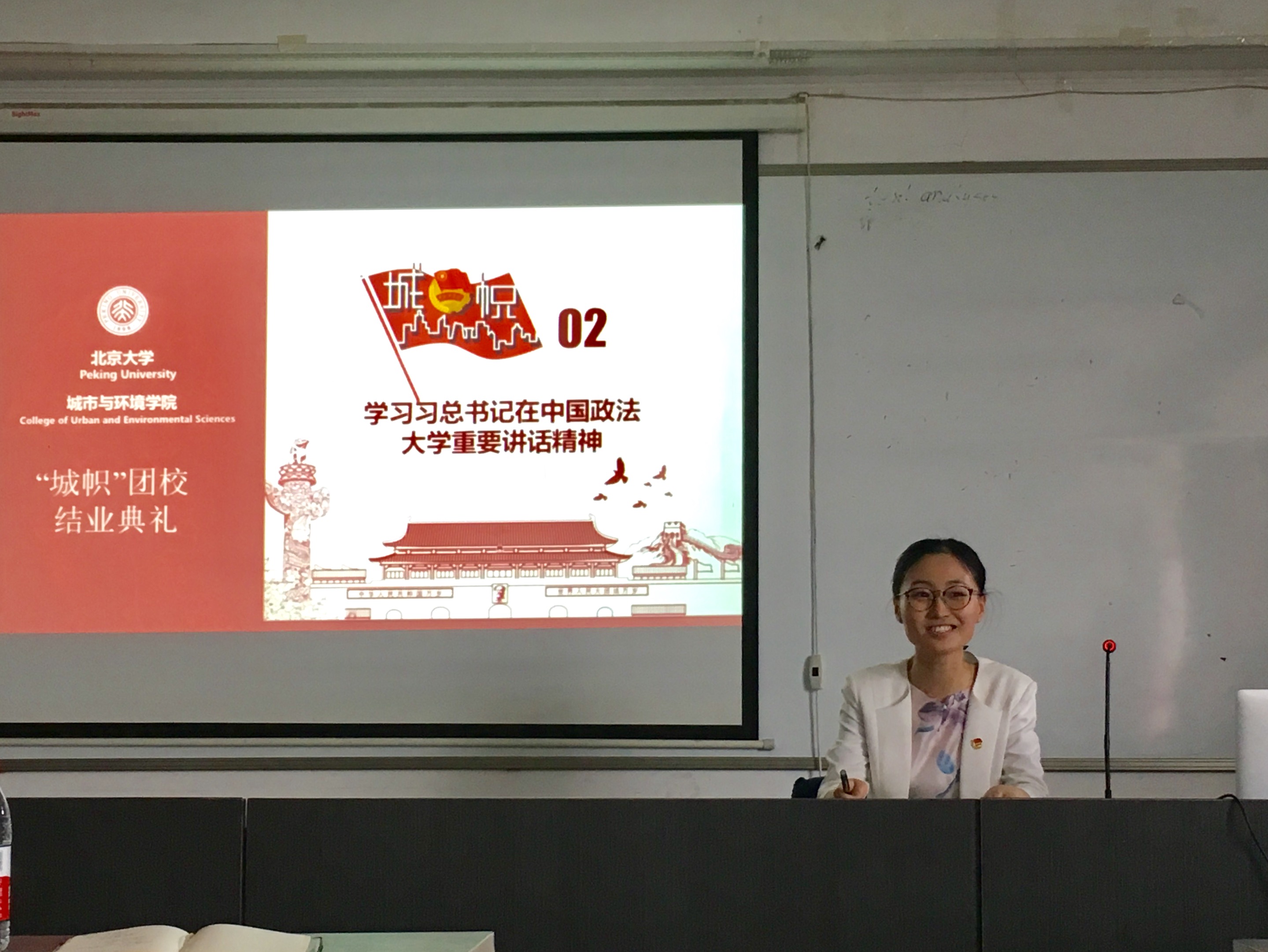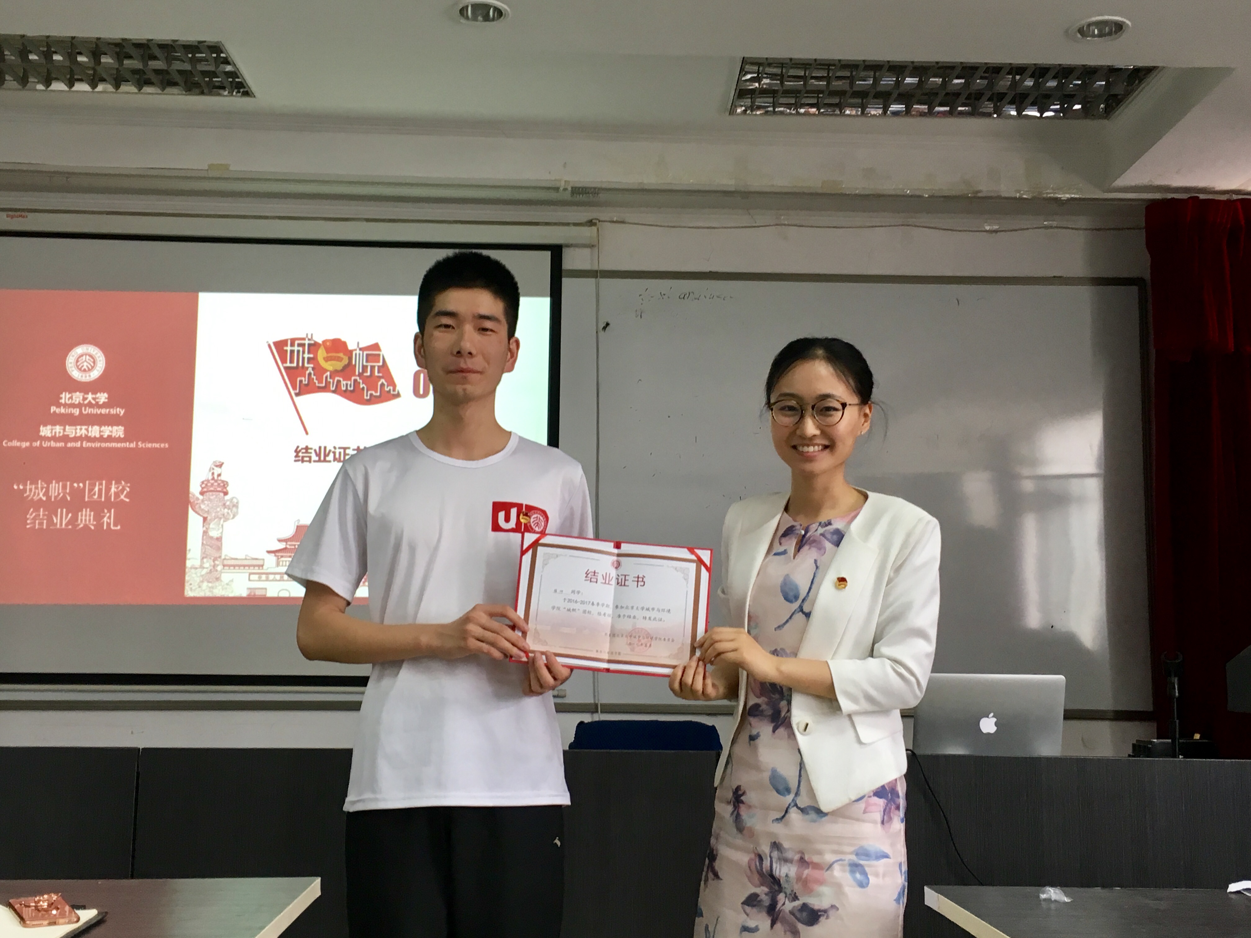 首期“城帜”团校的历程,重温团校开幕式、通识讲座、重走北京中轴线、“绿漾燕园”植树、黑豹野生动物保护站实践、“一学一做”讨论课等一系列精彩活动。2015级本科生徐帅作为优秀学员代表发言,分享了参加团校的初衷,以团校举办的各个活动为主线,畅谈自己的学习收获和心得体会,表达了自己传承五四精神、做合格共青团员的决心。最后,王宇凡老师为学员代表颁发结业证书。 本次学习活动是啪啪啦