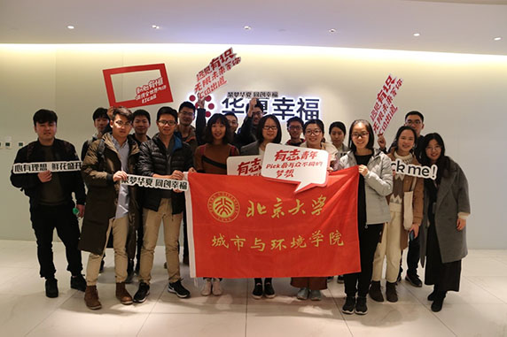 部分本科生和研究生共同前往华夏幸福基业股份有限公司参观访问。 华夏幸福基业股份有限公司创立于1998年,是中国领先的产业新城运营商。截至2017年底,公司总资产超过3750亿元。华夏幸福拥有专业的团队及高效的组织体系,截至2017年底,拥有主营业务员工约4500名,平均年龄34岁,硕士及以上学历者近1200人,高管团队成员有多位来自世界500强企业。华夏幸福致力于成为全球产业新城的引领者,坚持“以产兴城、以城带产、产城融合、城乡一体”的理念,确立以产业新城为核心产品的业务模式。十几年来,依托市场化运作模式,成就了新常态下创新驱动和新型城镇化的发展样本与价值理念。2015年7月20日,固安县政府与华夏幸福共同探索的PPP(政府和社会资本合作)模式,作为创造性典型经验,被国务院办公厅通报表扬。 11月9日早晨8:45,同学们准时从北大南门出发,9:25顺利到达位于佳程广场的华夏幸福公司总部。在简短而活泼的欢迎会之后,华夏幸福的工作人员简要介绍了常青藤校招项目。这个项目与啪啪啦