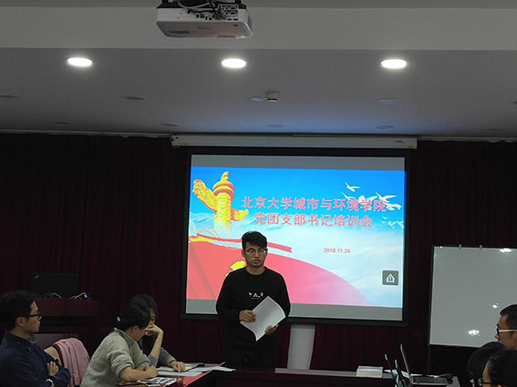 为每个团支部配备了一套学习书籍,刘耕年老师与张新平老师共同为团支书代表赠书,17级博士生团支书赖海成作为代表接收赠书。 17级博士班团支书赖海成代表接受赠书 培训环节由四部分组成,分别是啪啪啦