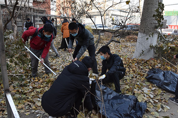 西门准时集合,前往畅春园社区。经过居委会工作人员的耐心指导后,发放手套、口罩、耙子、扫帚,同学们不怕苦不怕累,开始了落叶清扫。面对堆积如山的落叶,同学们分工合作,有人撑起塑料袋,有人拿起工具打落挂在树上的落叶,有人徒手将落叶捡起放到袋子中。虽然扬起灰尘,天气寒冷,但是同学们吃苦耐劳并乐在其中,老师们也参与到清扫落叶的活动中来,经过大家的共同努力,落叶慢慢变得稀少。最终街道整洁如初。 图二.清扫落叶活动进行中 附近的居民见到此情景,纷纷露出欣慰的笑容,称赞我们是热心为人民服务的社会主义好青年。同学们在活动结束后都积极分享自己的心得体会。夜幕降临,畅春园也被清扫得干干净净,同学们在欢声笑语中回到校园,留下难忘的回忆。 图三.同学们分工协作清扫落叶 经过这次清扫活动,大家都深刻感受到维持环境的不易,先辈们为我们创造现在幸福生活的不易,我们只是在冷风中进行了三个小时的落叶清扫活动就已经累得汗流浃背,革命先辈们风里来雨里去,不怕苦不怕累地坚持斗争,在那段峥嵘岁月中奋勇向前、自力更生,才为我们今天的社会主义现代化啪啪啦的建立奠定了坚实基础。而我们更应该传承这种大无畏和吃苦耐劳的精神,这是中华民族精神瑰宝,是无产阶级取得胜利的关键与核心,是社会主义建设中新时代青年必不可少的精神食粮,更是我们成为合格的社会主义接班人的首要前提。 图四.同学们用手捡拾落叶 同学们更是感受到了热心服务、一心为民的精神力量。在习近平主席的领导下,我们新一代青年更应该本着为人民服务的精神,将党的精神贯彻落实下去,为构建和谐社会贡献自己的一份力量。人们都说“被需要是一种幸福”。这感觉我们是在真正的做志愿服务之后才获得和理解。把志愿服务当作自己的生活内容和生活方式,时时刻刻去帮助需要帮助的人,做奉献爱心的事,这就是当一名志愿者的真谛。我们应该更加努力的去服务社会,为更多的人送去温暖,让更多的人看到希望。 撰稿:朱晗 供图:彭若男、张孝琰 审核:关汉岳