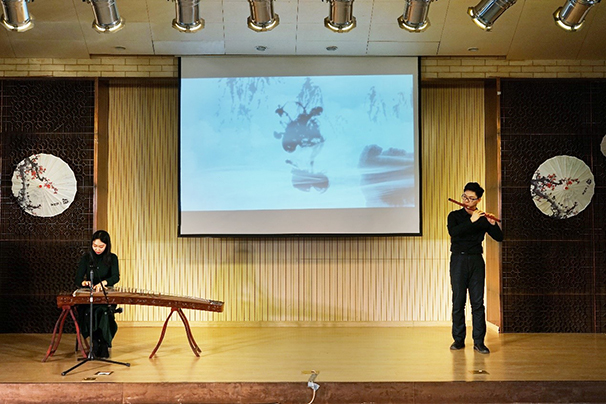 2019年“红城飞雪,燕园寻梦”新年晚会在正大国际交流中心二层弘雅厅举办。昏黄灯光古意悠然,水墨画伞烟雨江南,笑靥如花,衣袂飘飘。晚会在对众多经典武侠片段的重温中拉开了帷幕。 啪啪啦