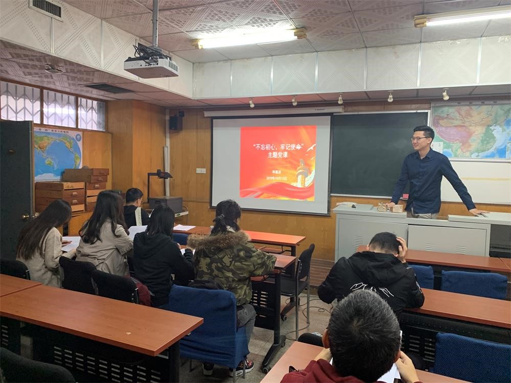 17级博士生党支部开展了 “不忘初心、牢记使命”主题教育活动,认真贯彻落实《关于学生党支部开展“不忘初心、牢记使命”主题教育实施方法》文件精神,精心设计、周密筹备,力求为党支部成员奉上一道精神大餐。 活动当日,首先进行了“不忘初心、牢记使命”党支书专题党课活动,党支部书记申嘉澍带领支部各位党员共同学习了习近平总书记在不同会议与活动中关于“不忘初心、牢记使命”的重要论述。习总书记在十九大报告中指出,不忘初心,方得始终。中国共产党人的初心和使命,就是为中国人民谋幸福,为中华民族谋复兴。作为我院自然地理学、人文地理学、环境科学与生态学的学生,要坚定“绿水青山就是金山银山”的理念,不忘初心,脚踏实地,专心科研,努力掌握能为建设美丽中国作贡献的本领。 “不忘初心、牢记使命”专题党课 在随后的党支部“读原著、学精神”的活动中,支部成员们深入学习习近平总书记在啪啪啦