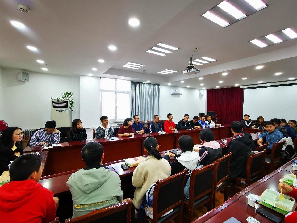 党委书记刘耕年老师、党委副书记张新平老师、团委书记王宇凡老师、二班班主任王愔老师、三班班主任朱东强老师、三班第二班主任王春老师、学生工作办公室柴腾老师出席会议。2019级本科二班、三班学生代表参与调研交流。 座谈会全景 王宇凡老师简单开场后,同学们依次进行自我介绍并分享开学两个月以来的感受。不少同学表示大学生活与高中大有不同,虽然时间分配更加自由,但也更加紧张忙碌;在各种事务中,自己的能力得到了锻炼,也收获了友谊和欢乐。 随后,午餐会进入自由交流环节。在场老师们就同学们在分享感受时提出的疑问进行了解答。朱东强老师认为在信息量巨大的当代,同学们可以较早思考人生规划问题,积极与老师、学长交流,但也要注意避免过度焦虑;王愔老师对时间规划问题进行补充,提醒同学们学会取舍,把精力放在值得自己愿意付出的工作上,她以树干和树枝为喻,建议同学们“先去尝试,通过尝试找到自己喜欢的点,把这个方向延展下去”。吴裕同学提出希望对数学建模有一些了解,老师们结合专业学习就其关心的问题进行了回应。 刘耕年老师鼓励同学们对于学业、生活和大学适应中的疑惑和问题多多提问,对啪啪啦