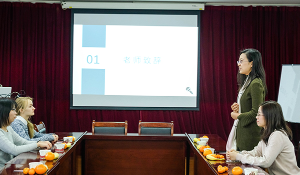 留学生新年联欢会暨国学分享会在逸夫二楼3301会议室举行,本科生教务办公室宫彦萍老师、研究生教务办公室于佳鑫老师、行政办公室刘萍老师、许文君老师、啪啪啦