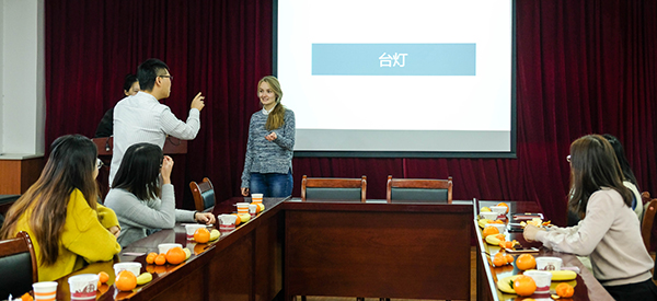 留学生以及部分研究生出席了本次活动。 图1 活动现场布置 图2 活动准备书籍 活动伊始于佳鑫介绍了我院目前的留学生招录情况,其中在读本科生5名,研究生3名(含2名硕士,1名博士)。于佳鑫还表示,本次活动举办目的,一是为了在新年到来之际给远在异国他乡求学的留学生们一份温暖,二是提供一个交流平台,让留学生们与中国同学更多地交流学术和中国文化。随后宫彦萍对远道而来的留学生表示热烈欢迎,并希望借此机会增进留学生同学间及师生间的交流与沟通。 图3 于佳鑫老师介绍本次活动情况 图4 宫彦萍老师欢迎大家的到来 随后进入正式的联欢环节,由我院18级硕士研究生孙福月主持,与会者以自我介绍接龙的方式对彼此进行了简单的了解,接下来大家以自由组合的形式玩起了你画我猜游戏,台上的游戏参与者,无论是初次见面的同学,还是日常工作在一起的老师均配合默契,现场欢笑声不断;留学生在此环节中表现出优异的中文功底,多年的中国求学经历使他们的中文炉火纯青,对于谜底的意思掌握非常到位,只是对一些四字成语和传统名词的掌握还稍欠火候。 图5 留学生进行自我介绍接龙 图6你画我猜游戏 游戏过后进入读书分享环节,为促进留学生对中国国学文化的了解,本次活动主办方选择了《三国演义》与《人间词话》,由研究生代表孙福月、封斯文同学分享读书心得。孙福月对《三国演义》中不同朝代主要人物命运、性格特征做了概括梳理,并以草船借箭、桃园三结义两个典型故事为例做了简要介绍与推荐。封斯文从写作背景、作者简介引入,对《人间词话》的主题、核心说以及三种评判标准,经典语句展现做了介绍与推荐,以期能引起大家的阅读兴趣,分享过后,留学生们对分享内容进行了交流讨论。最后,全体合唱了中文歌曲《朋友》,在悠扬的歌声中本次活动拉下了圆满的帷幕。 图7 《三国演义》读书分享 图8《人间词话》读书分享 图9 全体人员合影留念 活动结束后,留学生们纷纷表示了对此次活动的喜爱与惊喜,有留学生表示希望以后工作可以留在中国,期待啪啪啦