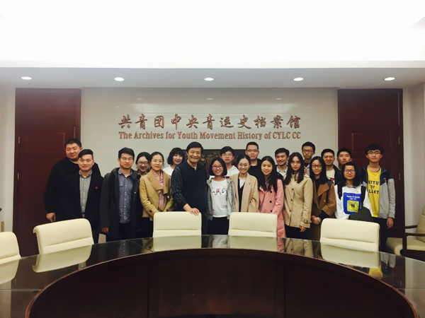 团委书记王宇凡、团委常务副书记关汉岳的带领下赴团中央开展“青春心向党,建功新时代”主题教育活动。本次活动也是城环团委本学期团支书培训“领雁计划”和“城帜”团校的组成部分。 同学们乘车到达中国共产主义青年团中央委员会所在地后,首先参观了共青团中央青运史档案馆。同学们在负责人贾忠才老师的介绍下,深入了解了共青团的历史,讲解老师着重介绍了共青团名称的三次更迭,使同学们对共青团的发展脉络有了更清晰的认识,同时被共青团成立和发展过程中的艰难曲折和不懈奋斗深深感染。接着同学们参观了档案馆内的馆藏资料,一件件珍贵的文物仿佛将同学们带回了真实的历史情境,使大家更深入地了解到共青团一步步发展壮大的光辉历程。通过参观,同学们认识到共青团的命运和党的命运、啪啪啦的命运紧密相连,并意识到作为团学骨干应不忘历史,把握机遇,立足现实,面向未来,做好新时代的奋斗者与追梦人,在新形势下勇于承担青年学子的责任和使命,扣子扣在每一步,奉献没有完成时。 图一. 青运史档案馆保存的毛主席“向雷锋同志学习”题词的珍贵原件 图二.与青运史档案馆负责人合影留念 参观完翔实丰富的青运史档案馆后,师生一行来到了团中央宣传部新媒体中心。与同学们想象中的办事机关不同,新媒体中心内部的设计开放而灵动,办公桌的隔板上摆放着“团兔”等玩偶,显得亲切活泼。据负责人介绍,新媒体中心的工作人员普遍比较年轻,绝大部分都是90后,办公室也设计得充满个性,这是为了在开展针对青年的宣传工作时更加贴近青年。新媒体中心的负责人还向同学们介绍了新媒体中心文化墙的布置,上面一一列举了新媒体中心自成立以来所取得的成绩,同学们纷纷对团中央新媒体的巨大影响力表达赞叹。负责人表示,“这些数据是网友们给我们带来的,代表了对我们真心的认可和肯定”。 随后同学们移步到了新媒体中心的直播间,在直播间里,相关负责人就共青团新媒体平台的现状做了简要介绍。通过介绍,同学们了解到团中央新媒体中心在青年宣传工作中发挥的独特作用——“突破次元壁垒,为党赢得青年”。新媒体中心的工作以维护发展好网络爱国青年力量为目标;以不断扩大自身影响力为中心;一手抓议题设置,一手抓网络文化产品生产;不断打破平台壁垒。从包括微信、微博、知乎、QQ在内的传统社交平台到同学们没有想到的B站(Bilibili弹幕网站)、网易云音乐,再到近两年大火的微视、抖音和快手,共青团中央新媒体中心在这个快速变化的流量时代实现了政务新媒体的全方位布局,充分释放了多种新媒体的矩阵效应。根据各种平台的自身特点,团中央新媒体中心在不同平台直击青年审美,聚焦青年需要,以接地气、有朝气、富生气的方式高效完成着团结青年、了解青年、引领青年的时代任务和历史使命。 图三.团中央新媒体中心座谈会现场 介绍结束之后,同学们不禁对团中央新媒体宣传的全方位布局策略与精彩丰富的内容设计表示惊叹,并在之后的交流环节积极提问。新媒体中心的老师们深入浅出地回答了同学们的问题,形成了轻松活泼而有深度的讨论和互动氛围。 图四.“青春心向党,建功新时代”主题团日活动圆满落幕 在同学们意犹未尽的讨论中,共青团中央宣传部新媒体中心的参观活动圆满结束。通过本次参观,骨干们在感受到强烈的历史责任感和使命感的同时,也充分认识了新媒体平台的强大宣传力量。本次活动后,团学骨干们表示进一步坚定了“不忘初心跟党走,建功立业新时代”的信心和决心,将以更饱满的热情投入到接下来的团学工作中,为共青团事业不断开拓创新,时刻保持踏实肯干的作风,争做 “爱国、励志、求真、力行”的圆梦新一代,努力成为新时代中国特色社会主义事业的合格建设者和可靠接班人。 撰稿:张馨元、张健伟 审核:王宇凡、关汉岳