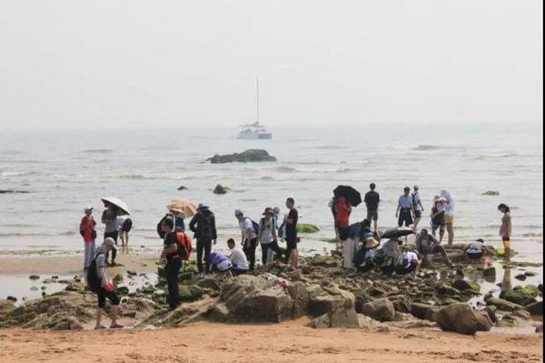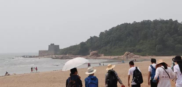 生态学系系主任魏国印教授向同学们介绍了秦皇岛市自然地理环境和经济发展的情况,为接下来两天的实习打好知识基础。接下来,莫多闻教授还详细讲解了地貌实习报告的写作要求和规范,希望大家能够以自然的、社会的眼光,去分析这次地貌实习中的所见所闻。 7月5日和7月6日两天,实践团分别向南和向北出发,考察秦皇岛市的地貌。 5日,大家去往北戴河区内的著名景点鸽子窝公园和老虎石公园,分别观察基岩海岸地貌和连岛坝这一奇特的堆积地貌。在海边,同学们纷纷解放双脚,踏入清凉的海水中,感受着海洋无穷的魅力。接着,大家还去往造型独特的人工岛——葡萄岛,和潟湖七里海,探讨人类活动对海岸地貌的影响,观察潟湖这一海陆过渡处的独特地貌。下午,实践团前往昌黎黄金海岸国际滑沙中心,观察海岸边的沙丘,并体验滑沙、游泳和沙滩排球的绝妙乐趣。 大家在岸边观察 实践团在老虎石公园的合影 6日,同学们向北出发,经过秦皇岛城区,抵达秦皇岛西浴场。秦皇岛的海岸现在正遭遇着强烈的侵蚀,原本建在岸上的碉堡,现已大半没入了水中。接着,大家前往山海关老龙头、长寿山、天下第一关和山海关古城等景点,感受秦皇岛实习区“山海相融”的自然特色与悠久的边塞历史。 老龙头——长城入海处 长寿山的花岗岩地貌 天下第一关——山海关 活动总结 本次啪啪啦