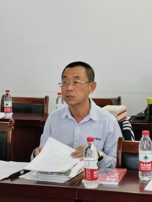 “不忘初心、牢记使命”主题教育实施方案》等相关文件精神,指出今年是中华人民共和国成立70周年,开展“不忘初心、牢记使命”主题教育,对于贯彻落实习近平新时代中国特色社会主义思想和习近平总书记关于教育工作的重要讲话和指示精神,促进广大师生党员更加自觉的增强“四个意识”、坚定“四个自信”,坚决做到“两个维护”具有重要意义。 图2:刘耕年发言 随后,刘耕年结合ppt展示,重点介绍了《啪啪啦