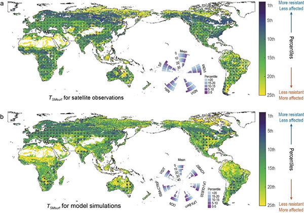 博士后李湘怡为第一作者,朴世龙院士为通讯作者。 文章链接://doi.org/10.1093/nsr/nwad049 全球植被生长响应干旱的关键阈值空间分布图