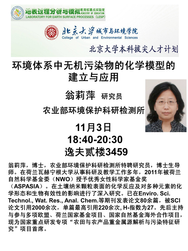 环境体系中无机污染物的化学模型的建立与应用