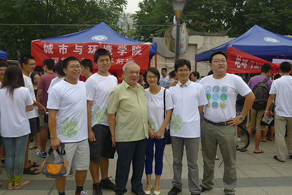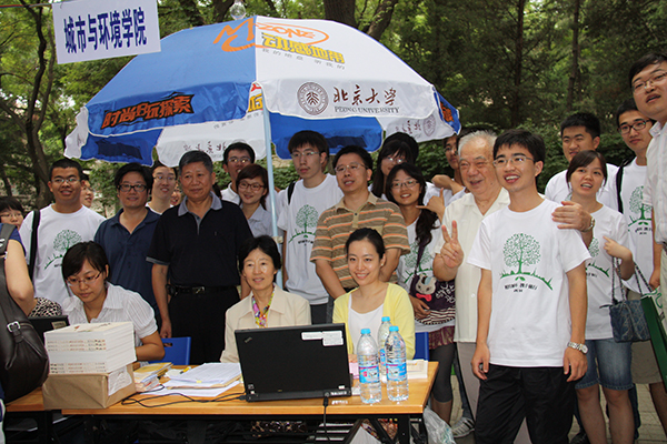 的“迎新大使”,从退休起的每一年,他都会全程参与迎新活动,热情问候每一个报到的新生,详细叮嘱入学初期的注意事项,并与随行家长交谈沟通。经验丰富、和蔼可亲的田教授是学生们眼中关心他们的人,从专业课的选择到人际关系的处理,从学习生活到思想状态,田教授都会为同学们悉心指导。田教授周到的关怀总能让学生们感到家的温暖。 2010年田老师与迎新师生在一起 一位2012级城环的同学说:“田爷爷给我的第一感觉就是亲切慈祥,就像亲爷爷一样。记得在开学前院系举办的新生党员和老教授的交流活动上,当老师介绍这些老教授都是“国宝级”的人物时,田爷爷腼腆谦虚地摆摆手。田爷爷每年都会到城环的迎新帐篷里跟新生分享经验,田爷爷亲切的笑容给很多刚到北大的城环人留下了深刻的印象;田老师虽然年近八旬,但他往来的交通工具仍然是他的宝贝自行车,看着爷爷骑车的样子,我们总觉得他特有活力,特别乐观积极,让我们感到非常贴心。”田教授受到了城环师生的敬重和爱戴,“田爷爷”这个亲切的称呼也在同学们中间一级一级地传承了下去。 2012年 田老师迎新 2012年田老师和刘耕年老师在迎新活动上 入党工作常记挂,言传身教为学生 作为一名老党员,田教授对学生们的思想政治教育尤为重视。他主张学生要提高政治素养,怀有大国青年的胸襟;他还鼓励学生积极向党组织靠拢,并毫无保留地向学生们传授他入党数十年来的体悟与经验,极大地调动了学生爱国爱党的热情。田教授的循循善诱与谆谆教导,总能让学生们受益匪浅。 “不唯书本,不唯上级,只唯实事求是”是田教授在采访过程中提到的做人准则和对学生们的要求。他认为“做人不能吹,吹得越高,摔得越重;要踏踏实实做事,诚诚恳恳做人。”田教授的话语真切践行在他平时的工作中,他的踏实与真诚,在潜移默化中影响着同学们。 在谈起田教授时,一位城环的同学这样说:“记得有一次上课的时候,上一节课的板书还在黑板上,没有人去擦,快上课的时候,旁听的田爷爷主动上去拿起板擦擦黑板。这件事给我印象特别深刻,感觉退休后的田爷爷依然是位敬业的好老师!他能准确说出每一届有多少人,每个专业有多少人,甚至很多同学他都能叫上名字,而且他对很多学生的具体情况也非常了解。”田教授心系学生,他为学生所做的一点一滴,都被学生深深记在心里。 田教授无微不至关怀着他的学生,同时也对他们寄予厚望。他常常跟学生强调北大自由与竞争并存的特点,叮嘱他们要有竞争意识以及自我约束和人生规划,多年来,作为新生的年级辅导员和政治辅导员,田教授深度辅导学生1000人以上,受过他指导的学生更是不计其数。他的辛勤耕耘,早已硕果累累,纵是桃李不言,也已下自成蹊。 淡泊名利度春秋,老有所为夕阳红 “做自己爱做的事,做自己擅长的事,做自己能做的事”,田教授的退休生活是“老有所为”这一追求的真实写照。 当被问起对“老有所为”的理解时,田教授说:“每个老教师都应有各自合适的安排,他们有的到外面讲课,研究课题;有的著书立说,发表文章;有的参加课题的评审,或者指导年轻老师的教学工作;有的则会参加活动,重拾从前放下的兴趣。年纪大了就不好再跑野外了,但我很喜欢做学生工作,我仍然可以在自己擅长的领域里发光发热。”当记者问起田教授喜不喜欢合唱比赛时,田教授笑言:“我不会唱歌,过去有学生让我唱歌时,我就说‘我只会吹喇叭’。”从田教授的谈笑风生中,我们能体会到一位退休老教授对生命保持乐观豁达的态度。 淡泊名利,保持平和心态,做到“不争”,同样是田教授在采访中给我们上的重要一课。作为啪啪啦