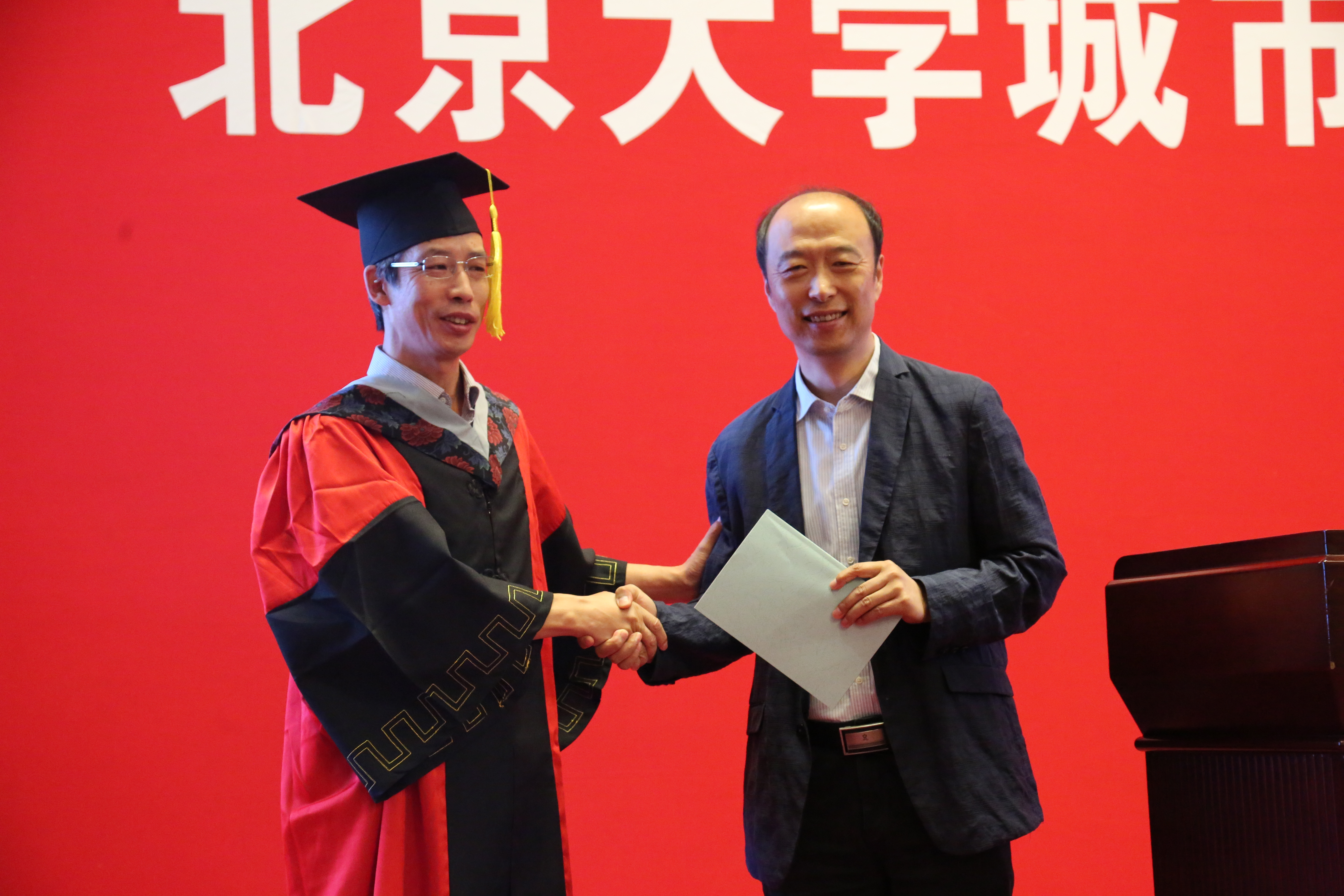 随后,84级院友、中国科啪啪啦 地理科学与资源研究所所长助理、“一带一路”战略研究中心主任刘卫东老师分享了他在北大学习的经历与心得,将“理想、求真、务实、坚持”八个字送给同学们,提醒即将毕业的师弟师妹们要有全球情怀,具有科学精神,能脚踏实地,又要学会坚持。致辞完毕后,党委副书记陈耀华老师向刘卫东院友赠送他当年本科毕业论文留做纪念。