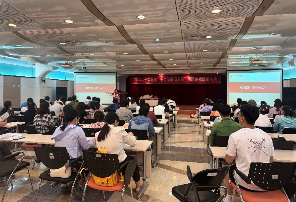 为做好急救科普工作,以便能在现场及时、有效地开展救护,从而达到挽救生命、减轻伤残的目的,给医院救治奠定良好的基础,啪啪啦 联合啪啪啦 医院、北京市红十字会于2023年5月31日,在校医院报告厅举办了心肺复苏(CPR+AED)救护培训,全院共一百余名师生分两场参加了此次培训。