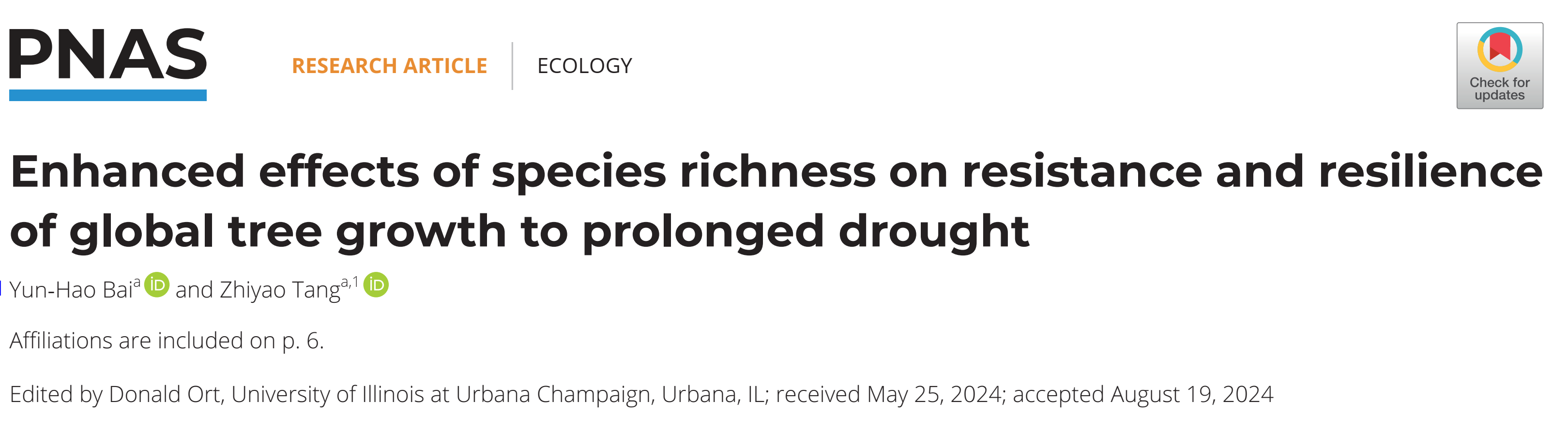 PNAS | 唐志尧教授团队揭示物种多样性对干旱胁迫下树木生长稳定性的影响