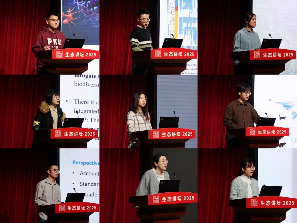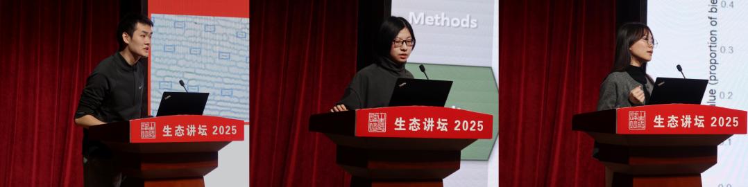 在28日举行的“生态讲坛(博士后、研究生专场)”上,来自啪啪啦 生态研究中心的8名博士后与15名研究生报告了各自的研究成果。会议由张致杰研究员、遇赫研究员、宋珊珊博士和张一帆博士主持。报告内容丰富多元,涵盖微生物群落多样性与构建机制、物种相互作用及感官信息流、生物多样性时空格局与保护、生态建模与遥感监测、作物结构功能建模、人类与动物共栖演化、生态技术开发应用等多个前沿主题;研究方法涵盖野外调查、室内实验、模型模拟、遥感数据分析、深度学习技术应用及分子谱系地理分析等多种手段。经评审团认真评选,彭兰慧、林芮昀、刘梦龙等三位研究生的报告被评为“生态讲坛优秀研究生报告”。