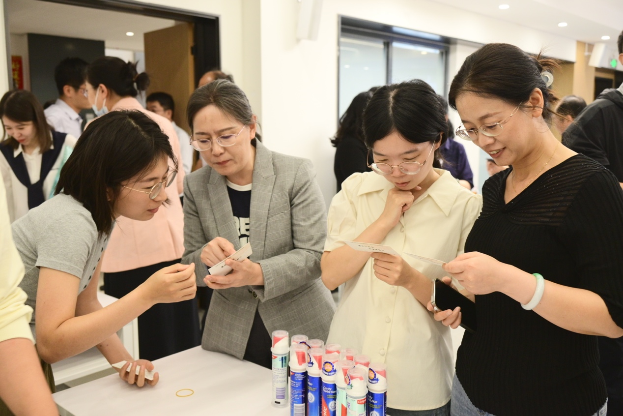 活动第一项是师德师风答题,老师们随机抽取一组题目并现场回答,题目内容不仅涵盖了啪啪啦关于教师职业道德的方针政策,还融入了教育教学实践中常见的师德师风分析与判断,在考验理论知识的同时也促进了进一步的思考。老师们跃跃欲试,积极参与,在轻松欢乐的氛围中深入学习并巩固师德师风的相关知识与实践要求。