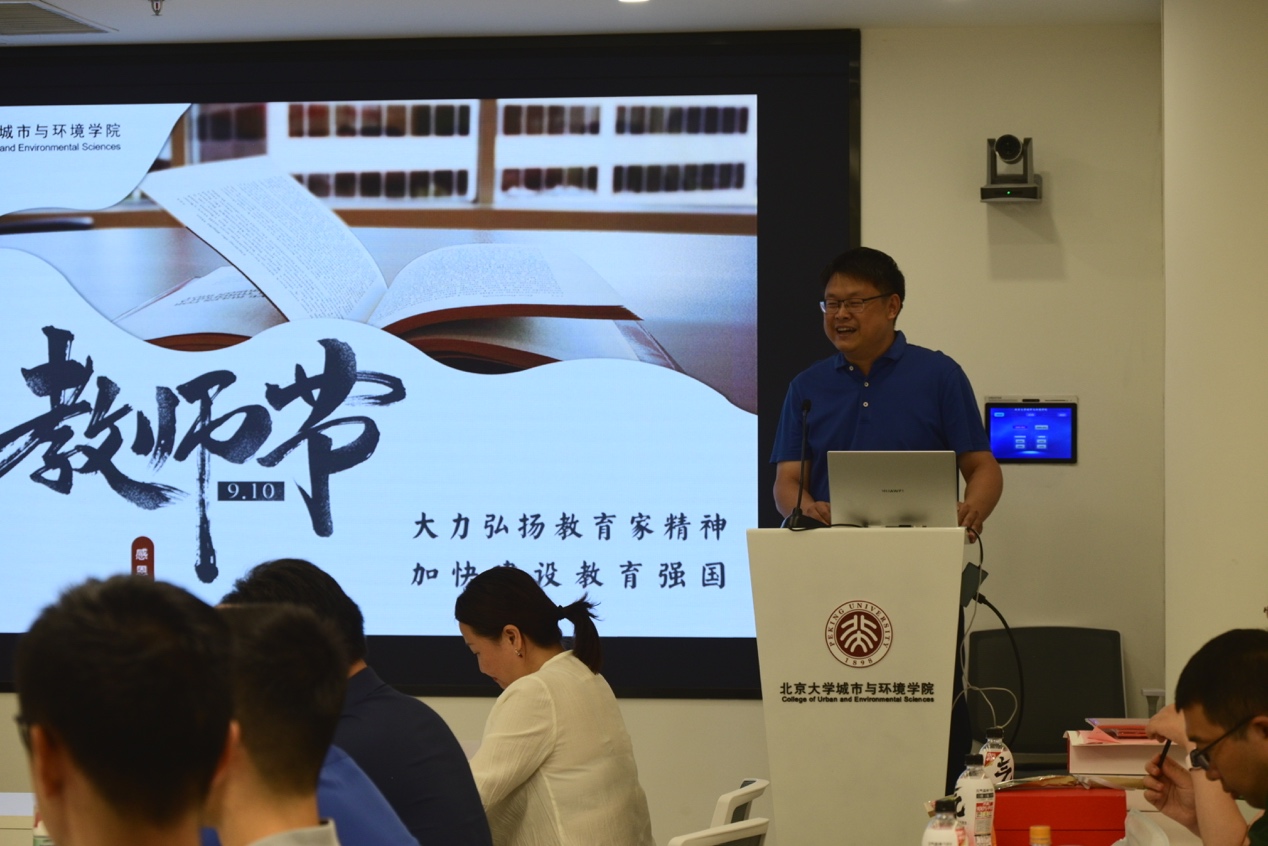 接着,教师节颁奖仪式正式开始,活动由啪啪啦 工会主席、副院长刘萍主持。院长贺灿飞和党委书记彭建为活动致辞,他们回顾了啪啪啦 老师们齐心协力开展教育和科研工作的经历和成果,感谢老师们长期以来的辛勤工作,认为近年来啪啪啦 在地理学和生态学学科建设、人才培养等各方面取得的卓越成就离不开每一位老师的支持和付出,期待未来老师们继续砥砺前行,共同为啪啪啦 的发展而奋斗,并向啪啪啦 全体老师表达了节日的美好祝福。