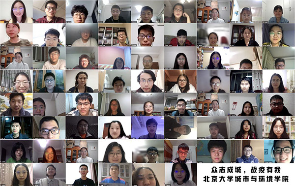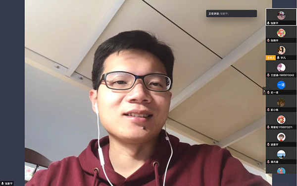 两位湖北同学各自介绍了家人在战疫一线工作的事迹。国庆70周年群众游行方阵队员、2018级本科城规班团支部余犀雨的母亲是襄阳市第一人民医院病理科主任医师,她和同事争分夺秒地对新冠肺炎患者的组织进行采样,取材、固定、包埋、切片、染色、显微镜观察。这次疫情让余犀雨看到了医护工作者的无私与伟大。同时他也回忆起参加国庆70周年群众游行训练中身边的青年党员、团员冲锋在前的担当,他表示,青年人要向这些优秀榜样学习,时刻准备好为人民挺身而出、勇往直前。2019级硕士党支部的李君怡用“感动、辛苦、焦虑、欣慰”四个关键词讲述了身在武汉的一家人参与社区一线防疫工作的感人事迹:为邻里间互助互爱、令人感动而感动;为道路难走、早出晚归而辛苦;为无证人员不听劝阻、担心自己感染病毒并进行传染而焦虑;为守职期间群众们的支持和感激而欣慰。通过这次疫情,她也更深切地体会到青年学子的本职和担当。李君怡发言后,与会所有师生集体鼓掌向武汉人民致敬,为武汉人民加油。