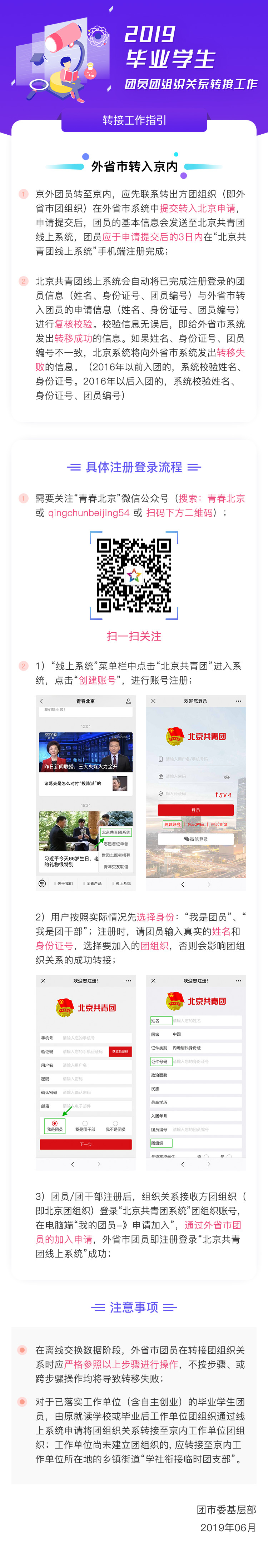 在离线交换数据阶段,外省市团员在转接团组织关系时应严格参照以上步骤进行操作,不按步骤、或跨步骤操作均将导致转移失败。如先在外省市系统中发出转入北京申请,再进行“北京共青团系统”注册登录,将可能导致组织关系转接失败。